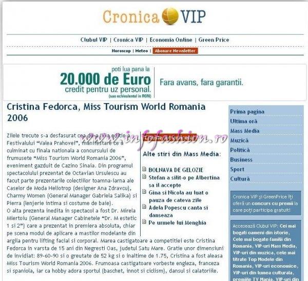 Browsing: Photo_Gallery A,B,C...Z can inspire you  «-»  Photo_Gallery INTELLIGENCE  «-»  Press Infofashion mass media despre evenimentele noastre  «-»  Press 2006 Events InfoFashion  «-»  2006_FVPH Press Festival Valea Prahovei Miss Tourism World Romania la Sinaia