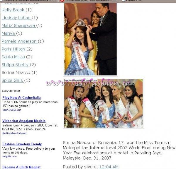 Browsing: Photo_Gallery A,B,C...Z can inspire you  «-»  Photo_Gallery INTELLIGENCE  «-»  Press Infofashion mass media despre evenimentele noastre  «-»  Platinum_2007 Ag InfoFashion Press  «-»  Sorina_Neacsu 2008 Romania castigatoarea Miss Tourism Metropolitan International in Malaysia prin Infofashion Platinum Ag S_175CM