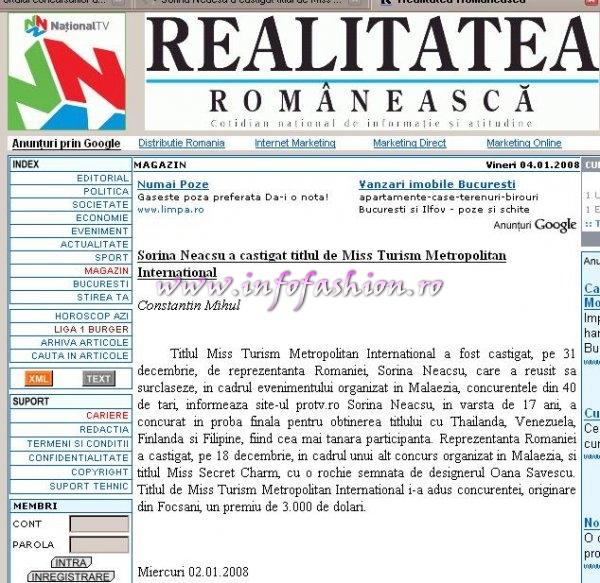 Sorina_Neacsu 2008 Romania castigatoarea Miss Tourism Metropolitan International in Malaysia prin Infofashion Platinum Ag S_175CM