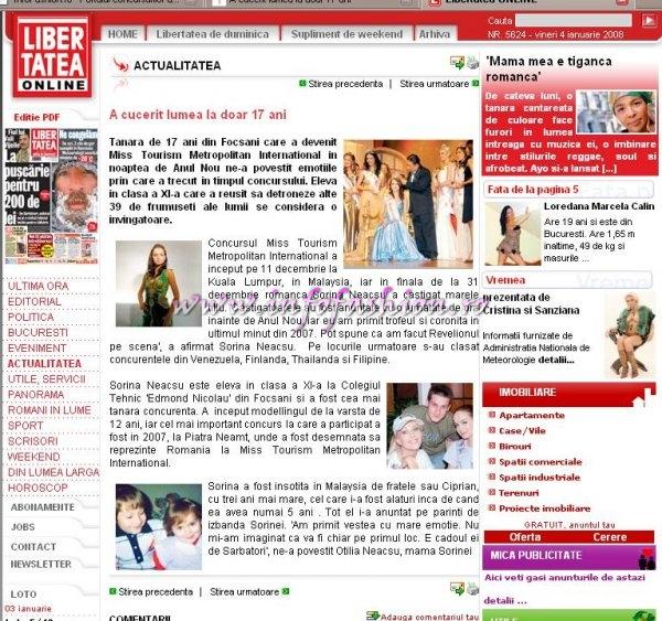 Browsing: Photo_Gallery A,B,C...Z can inspire you  «-»  Photo_Gallery INTELLIGENCE  «-»  Press Infofashion mass media despre evenimentele noastre  «-»  Platinum_2007 Ag InfoFashion Press  «-»  Sorina_Neacsu 2008 Romania castigatoarea Miss Tourism Metropolitan International in Malaysia prin Infofashion Platinum Ag S_175CM