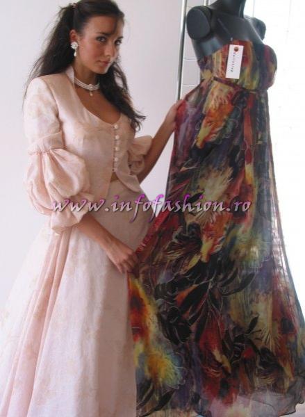 Costumul national si rochia de seara purtate de Roxana Curelea (19 ani), reprezentanta Romaniei, au fost semnate in exclusivitate de creatoarea Ana Zdravcu (Casa de Moda Heliotrop).